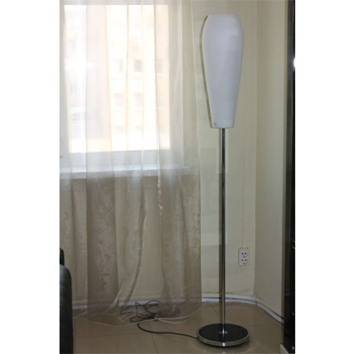 Материал абажура - Стекло белое матовое. Основание - Металл, хром. Яркость света может регулироваться. Высота 165 см, диаметр 27,5 см.